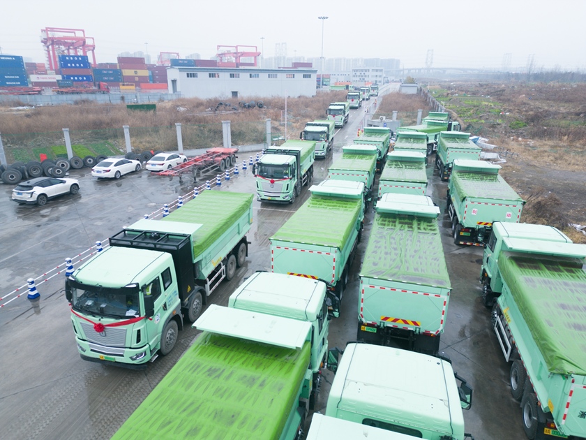 10點(diǎn)18分,城發(fā)物產(chǎn)公司純電新能源渣土車隊(duì)從下沙港9#泊位渣土碼頭緩緩駛出,前往上城區(qū)開展第一次渣土運(yùn)輸任務(wù),純電新能源渣土車正式投運(yùn),為市渣土消納行業(yè)綠色發(fā)展注入了新動力。