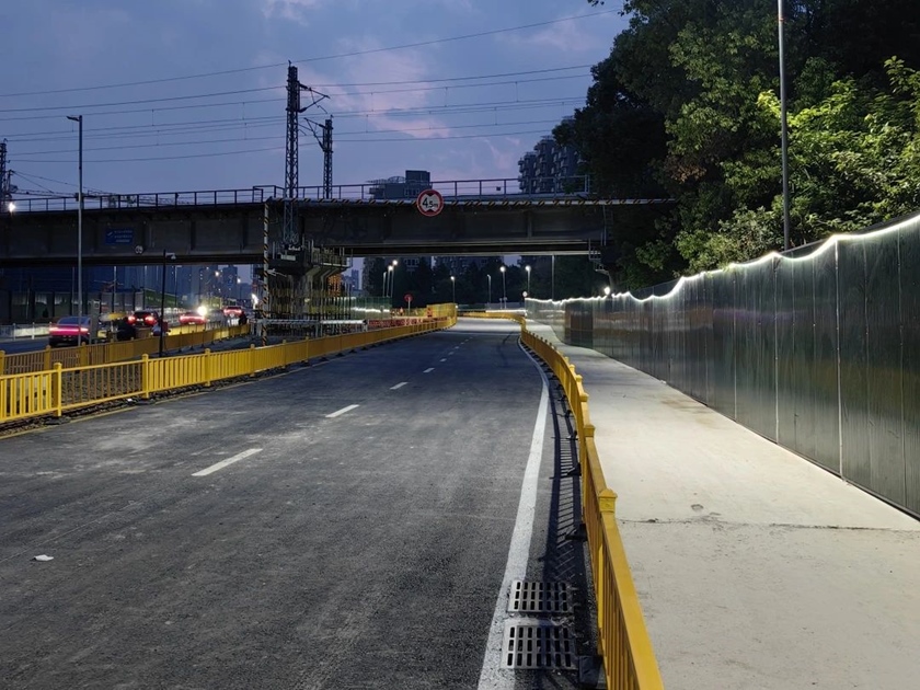 自崇杭街項(xiàng)目開(kāi)工以來(lái),集團(tuán)統(tǒng)籌謀劃,多方協(xié)調(diào),先后攻克了管線遷改復(fù)雜、涉宣杭鐵路保護(hù)施工等難題。崇杭街現(xiàn)狀交通流量大,需確保雙向四車(chē)道通行,交改難度極大。對(duì)此,指揮部積極與臨平、拱墅區(qū)交警部門(mén)溝通,優(yōu)化交改方案。在通行道路兩邊安裝防護(hù)欄桿及施工圍擋,并落實(shí)專人指揮,確保交改期間行人及社會(huì)車(chē)輛安全順利通行。
