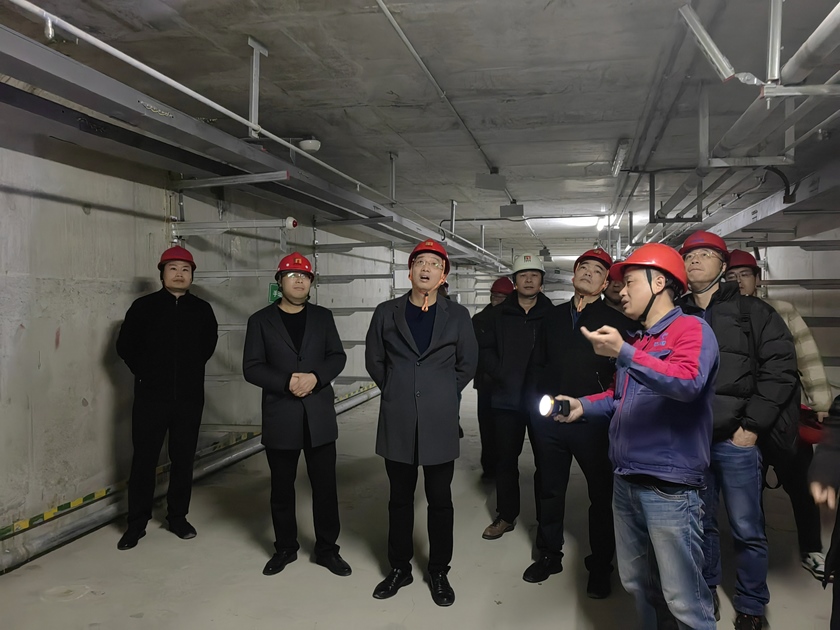 在金橋北路管廊現(xiàn)場,蔣征波總經(jīng)理、方曉副總經(jīng)理實(shí)地踏勘了管廊控制中心、水力艙及電力艙,了解廊體內(nèi)部監(jiān)測方案及項(xiàng)目后期運(yùn)營收益情況,并針對提升管理水平等方面工作提出新要求。